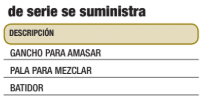 • Estructura en aluminio anodizado. •Exterior en aluminio anodizado.• Depósito de 7 litros en acero inox. incluido.• Velocidad variable. •Cantidad máxima de masa que puede amasar:600-700 gr. (en peso de harina).•Gancho, pala y batidor en acero inoxidable