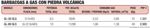 COCINAS SERIE 600 BARBACOAS A GAS CON PIEDRA VOLCÁNICA Y ELÉCTRICA DE AGUA