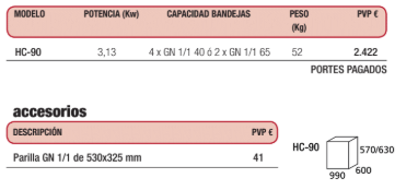 • Construidas en acero inoxidable.• Una parrilla GN 1/1 incluida.• Calentamiento mediante resistencia y ventilador de 80W y 2700 r.p.m.• Voltaje 230V/50Hz
